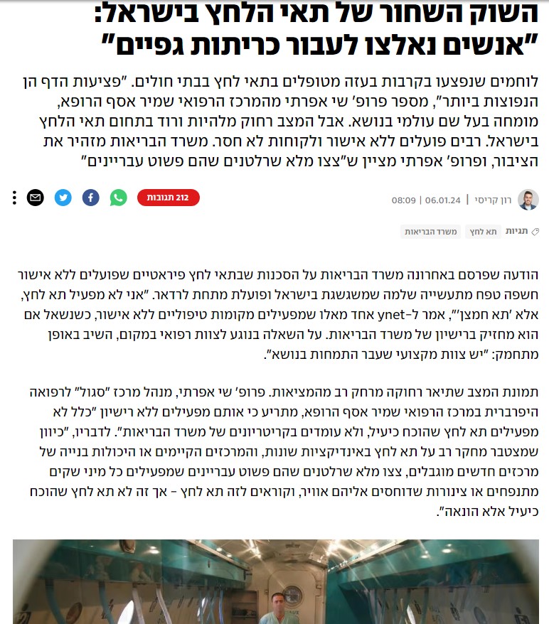 כתבת Ynet על השוק השחור של תאי הלחץ